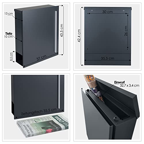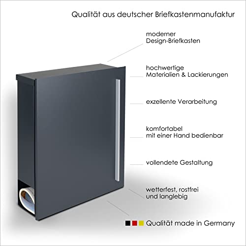 Specification: Brievenbus met krantenrol, antraciet-grijs (RAL 7016), MOCAVI Box 110, brievenbus met krantenvak, grote wandbrievenbus…