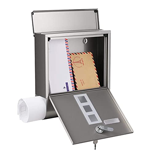 Specification: SONGMICS roestvrijstalen brievenbus, brievenbus aan de wand, slot met koperen slotcilinder, krantenvakje, raam…