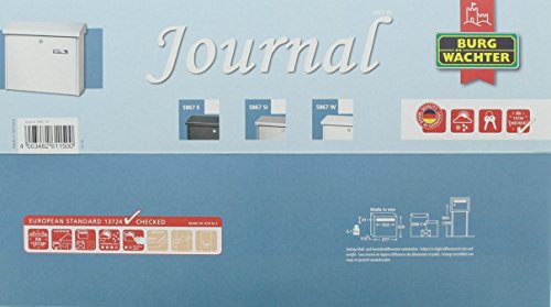 Specification: Burg-Wächter brievenbus, A4 inworp-formaat, EU-norm EN 13724, incl. 2 sleutels, verzinkt staal, Journal 5867 W, wit