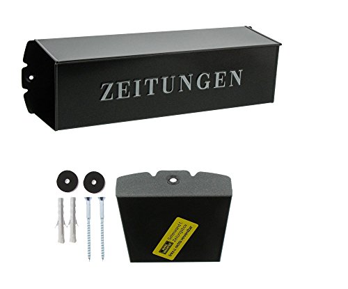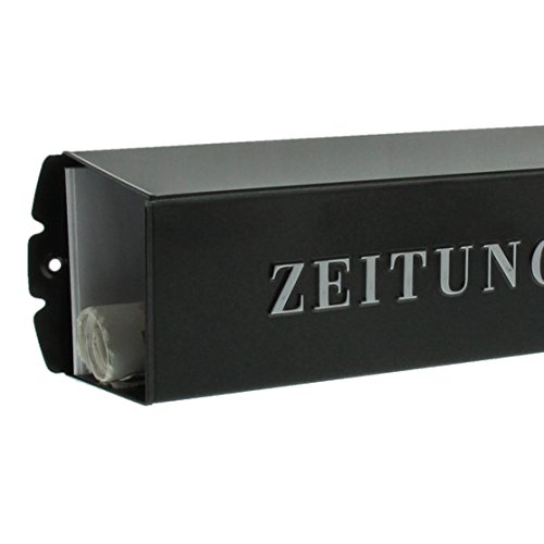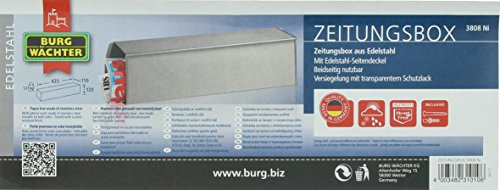 Krantenbox voor buiten: Voor bevestiging aan een brievenbus, bruikbare breedte 380 mm – hoekige krantenbox: met reliëf letters, aan beide zijden bruikbaar, met passend gelakt metalen zijdeksel – Eenvoudige montage: onder de brievenbus of op de brievenbus mogelijk – Made in Germany – Weerbestendig: Hoogwaardige afwerking – Levering: 1 Burg Wächter krantenrol, 808 E, 12140, incl. bevestigingsmateriaal. Breedte: 425 mm, diepte: 110mm, hoogte: 120mm, materiaal: metaal, kleur: ijzer
