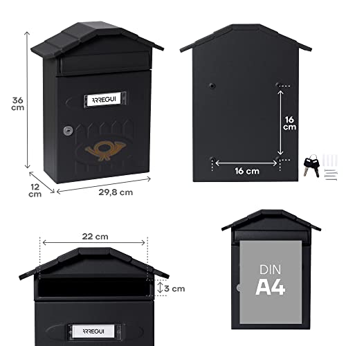 Arregui Villa E5004 individuele brievenbus van staal, maat M (DIN A4), gestructureerd zwart, 36 x 29,8 x 12 cm