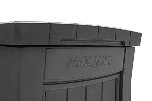 Geen extra wegen meer na feestavond om pakketten op te halen. Onopvallend design, de pakketdoos werkt als een tuindecoratie, pakketvak is afsluitbaar en weerbestendig materiaal: polypropyleen, robuuste kunststof. Kleur: antraciet. Inhoud levering:
