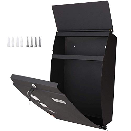 Nictemaw brievenbus muurbrievenbus met kijkvenster, 2 sleutels, brievenbus ijzer, poedercoating, met bevestigingsmateriaal, zwart